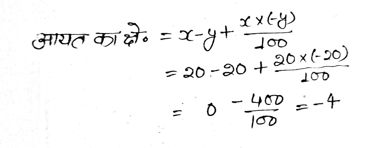 की वृद्धि हो जायेगी।यदि किसी आयत की लंबाई में x% की वृद्धि तथा चौड़ाई में y% की कमी कर दी जाय तो उसके क्षेत्रफल में